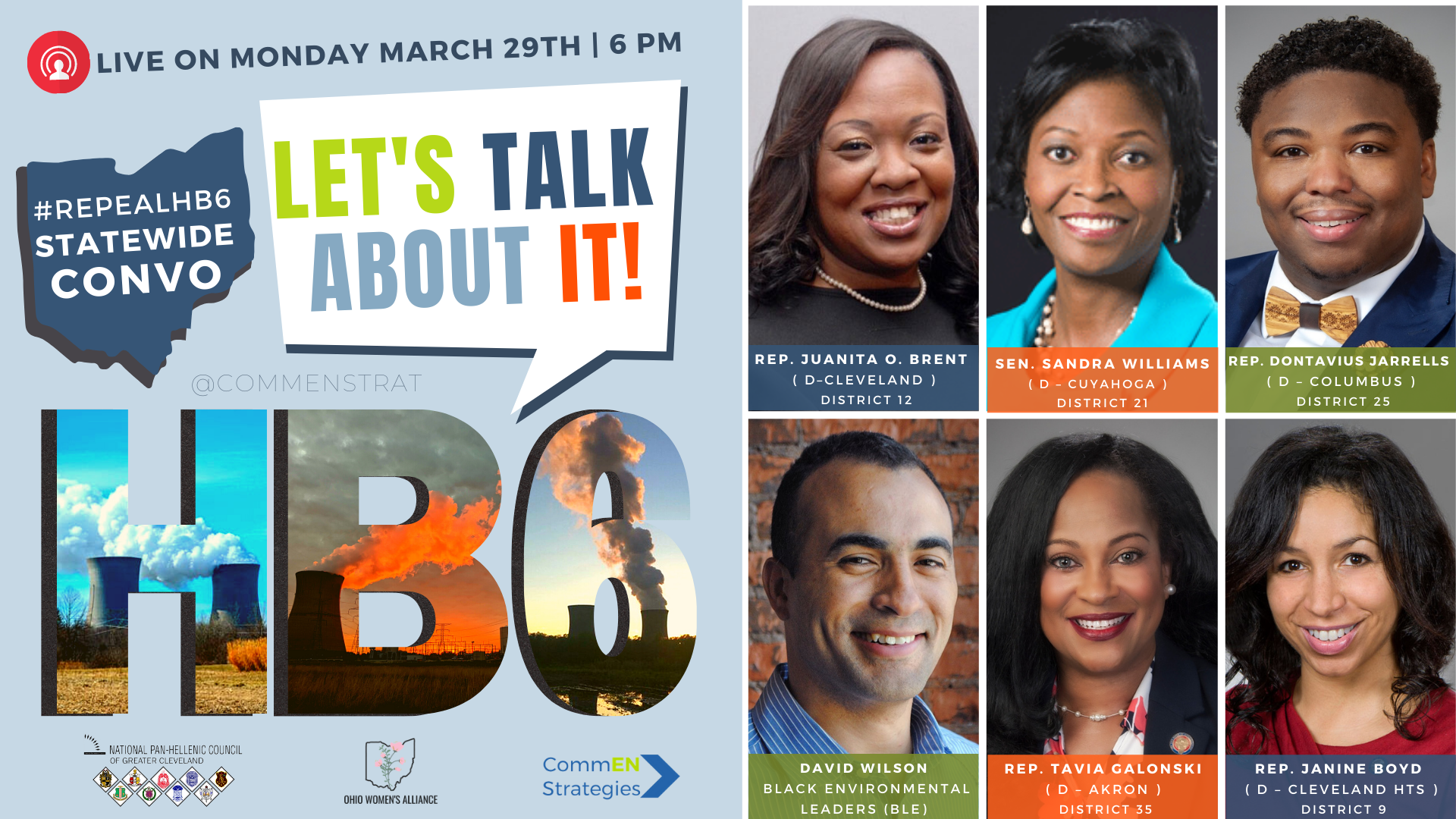 A centerpiece of the campaign was the livestream series “Let’s Talk About HB6”, featuring panel discussions with policymakers and experts. I created promotional flyers and graphics to support each event, designed to grab attention and encourage participation. Additionally, I set up and managed Facebook event pages to promote the livestreams, ensuring maximum visibility and reach.